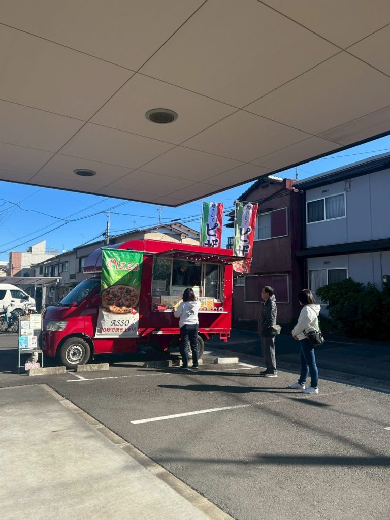 お昼はキッチンカーPizzeria ASSOさんの石窯ピザをみんなで食べました。